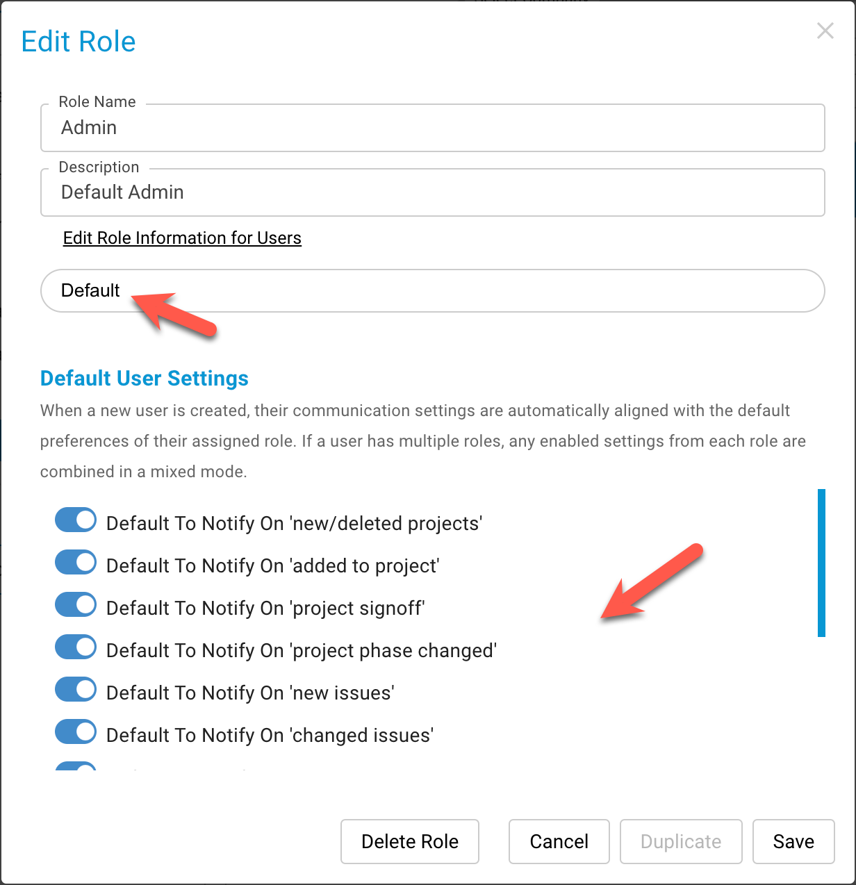We recommend that administrators review their role definitions and ensure the Default User Settings are configured appropriately. You can easily find these settings by scrolling to the relevant section or by typing "Default" in the “Search Permissions…” field.